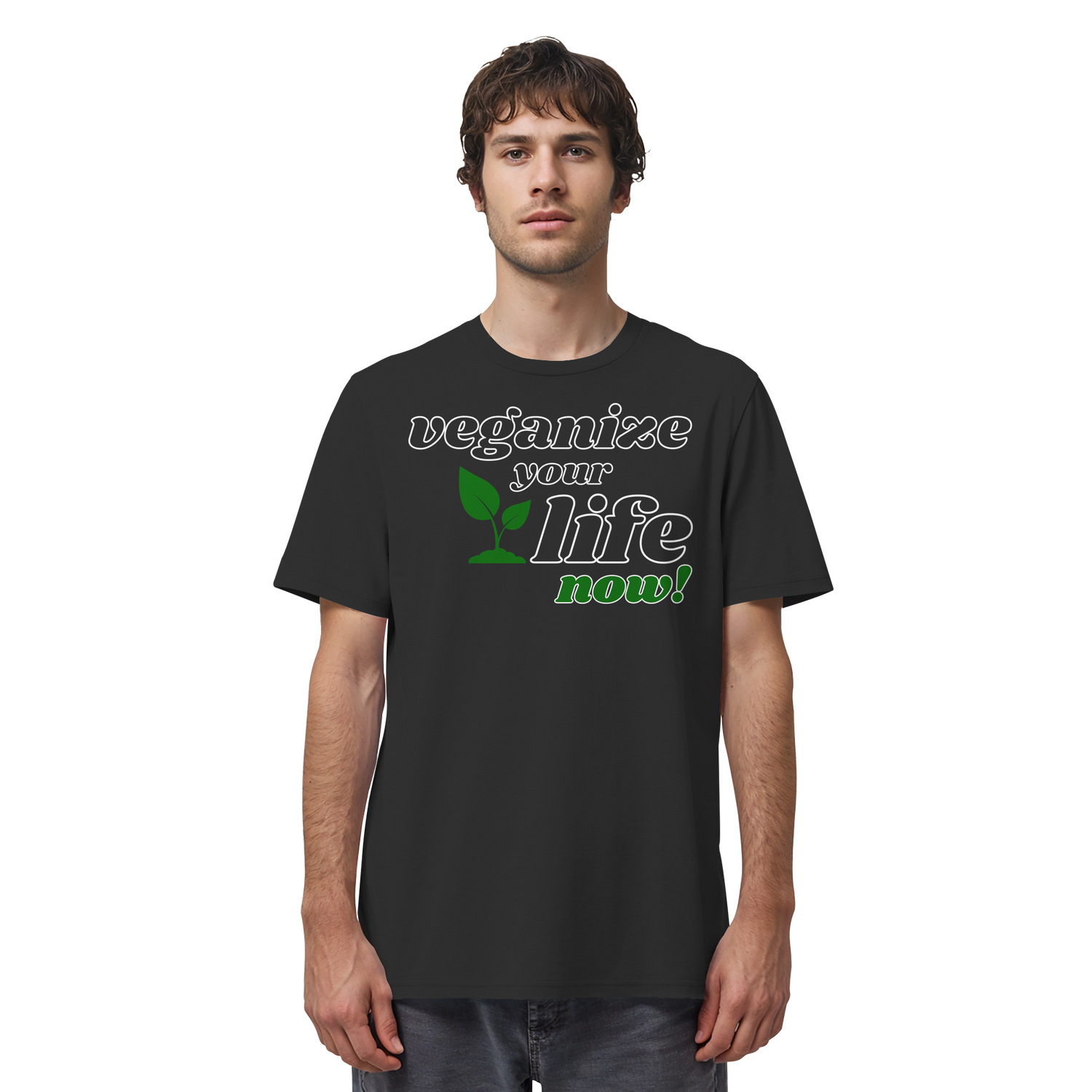 Motiv "respect our life, go vegan" - Herren Bio T-Shirt V-Ausschnitt