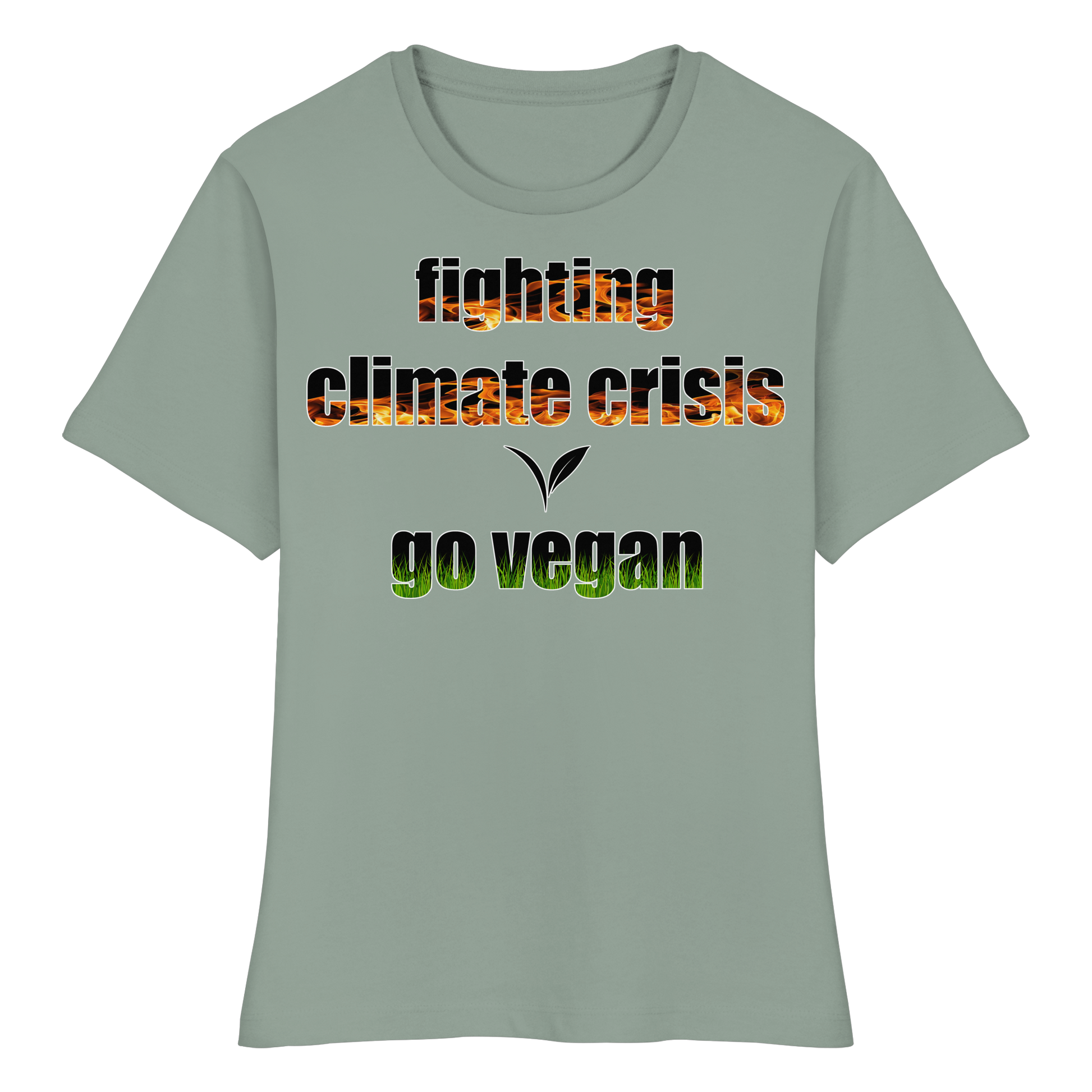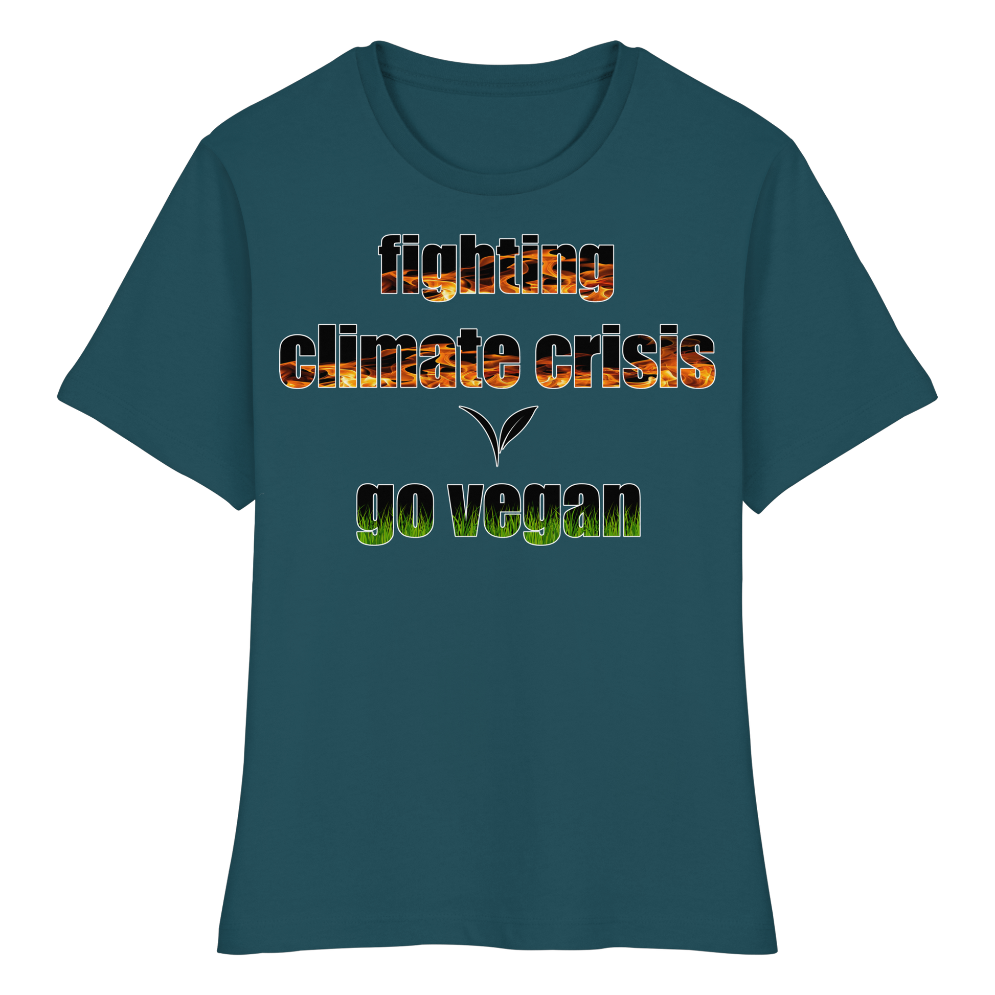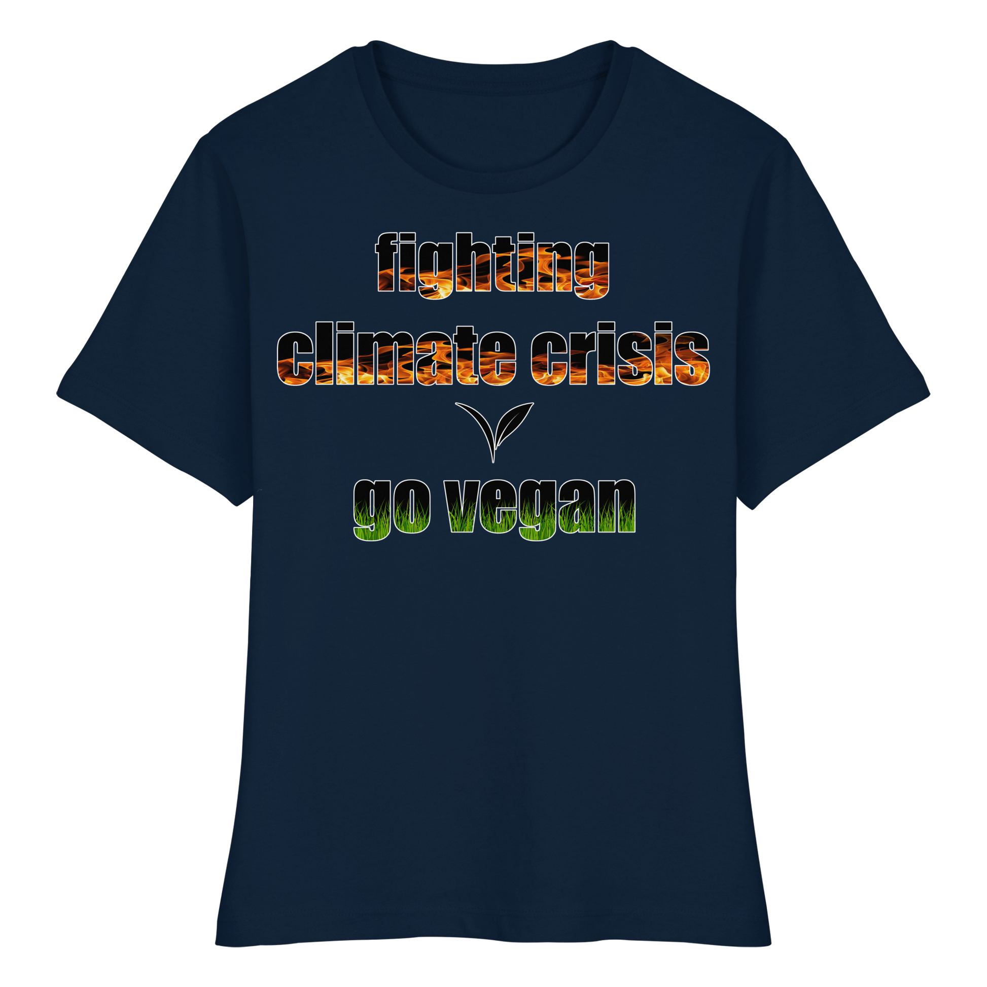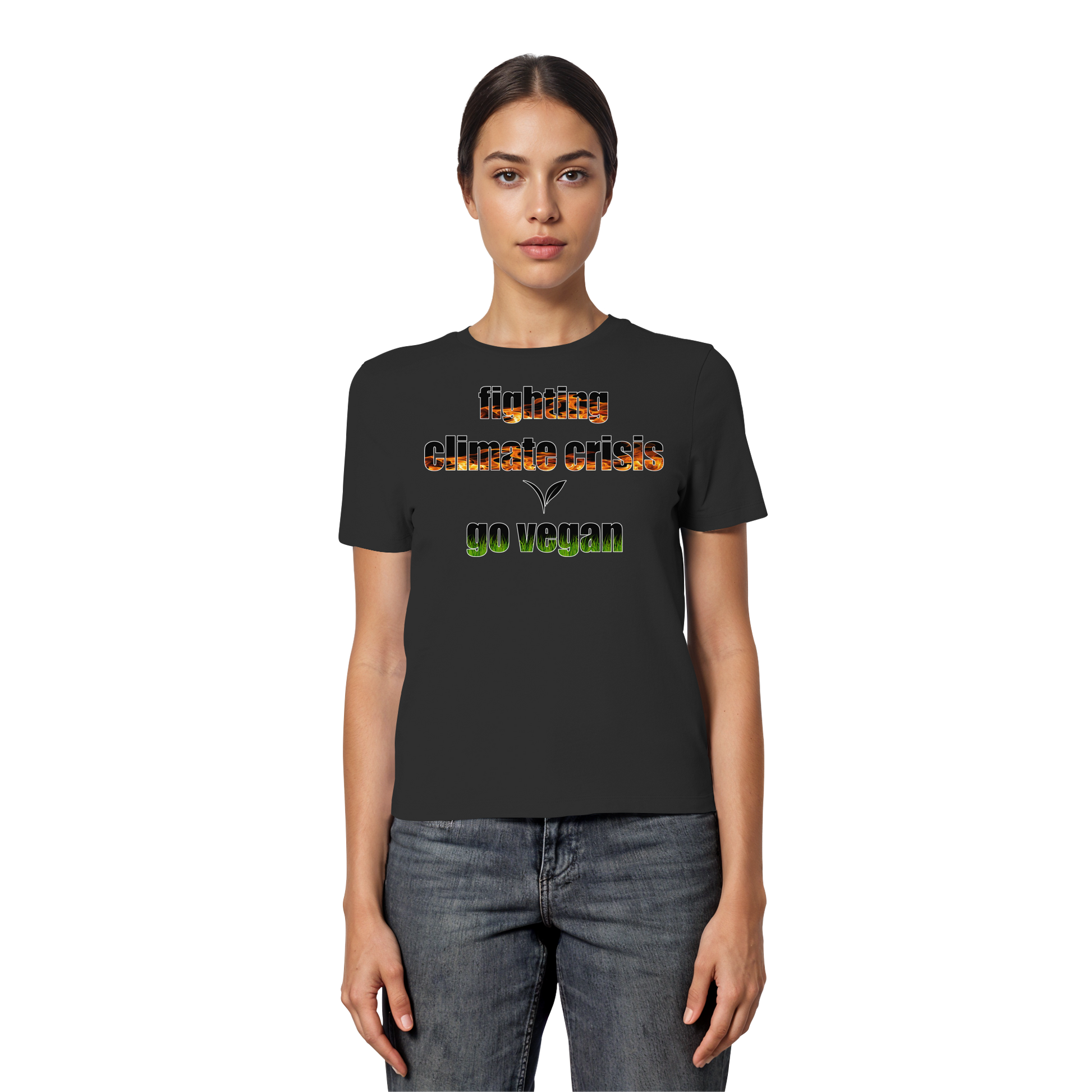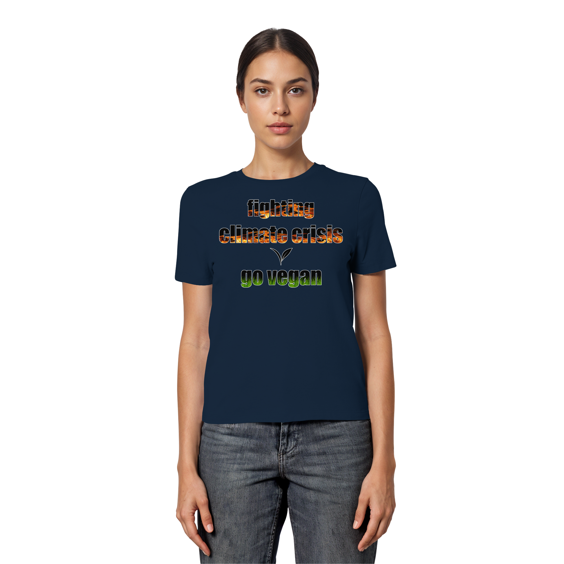 vegwear "fighting climate cirsis" - eng geschnittenes Damen Bio T-Shirt vegan & klimafreundlich