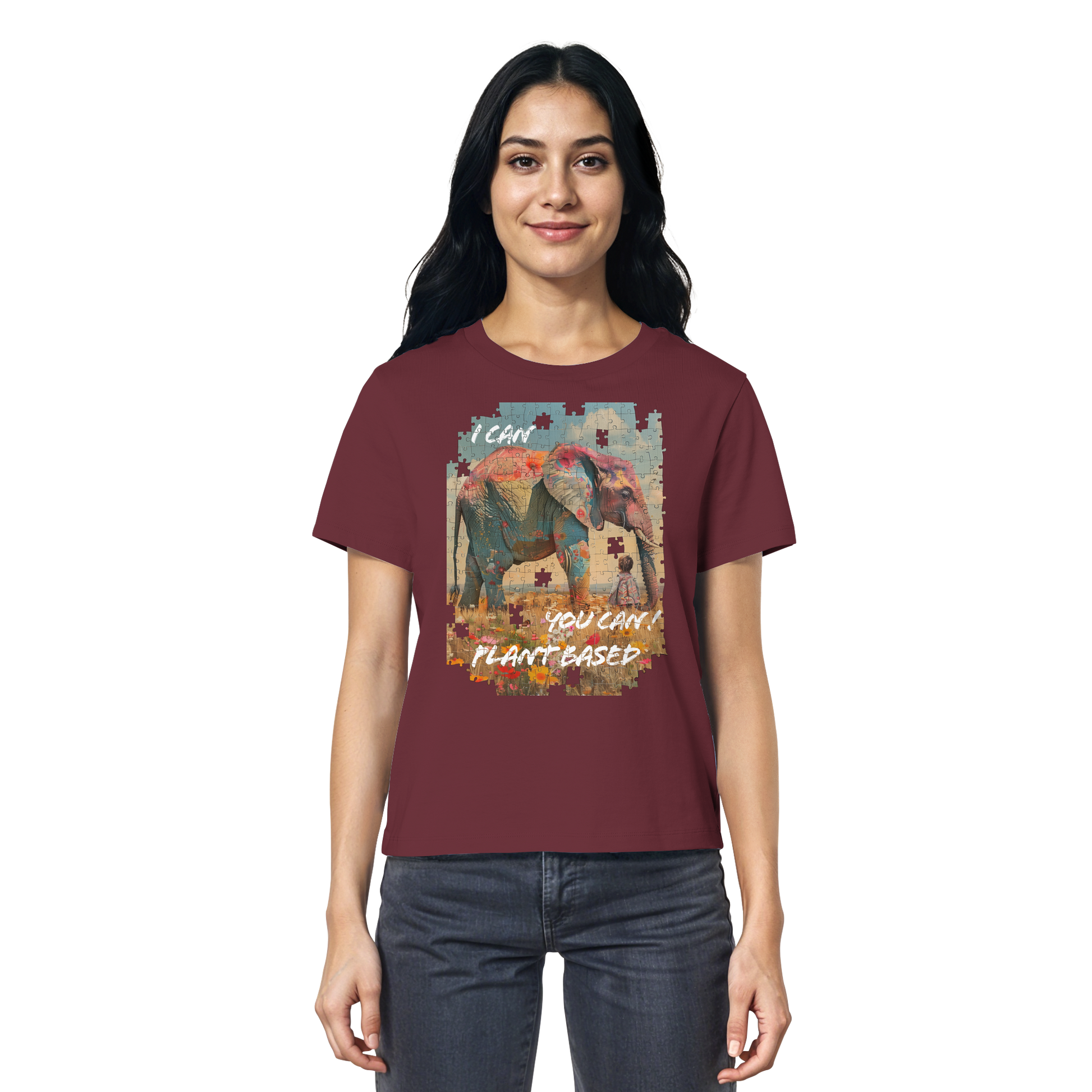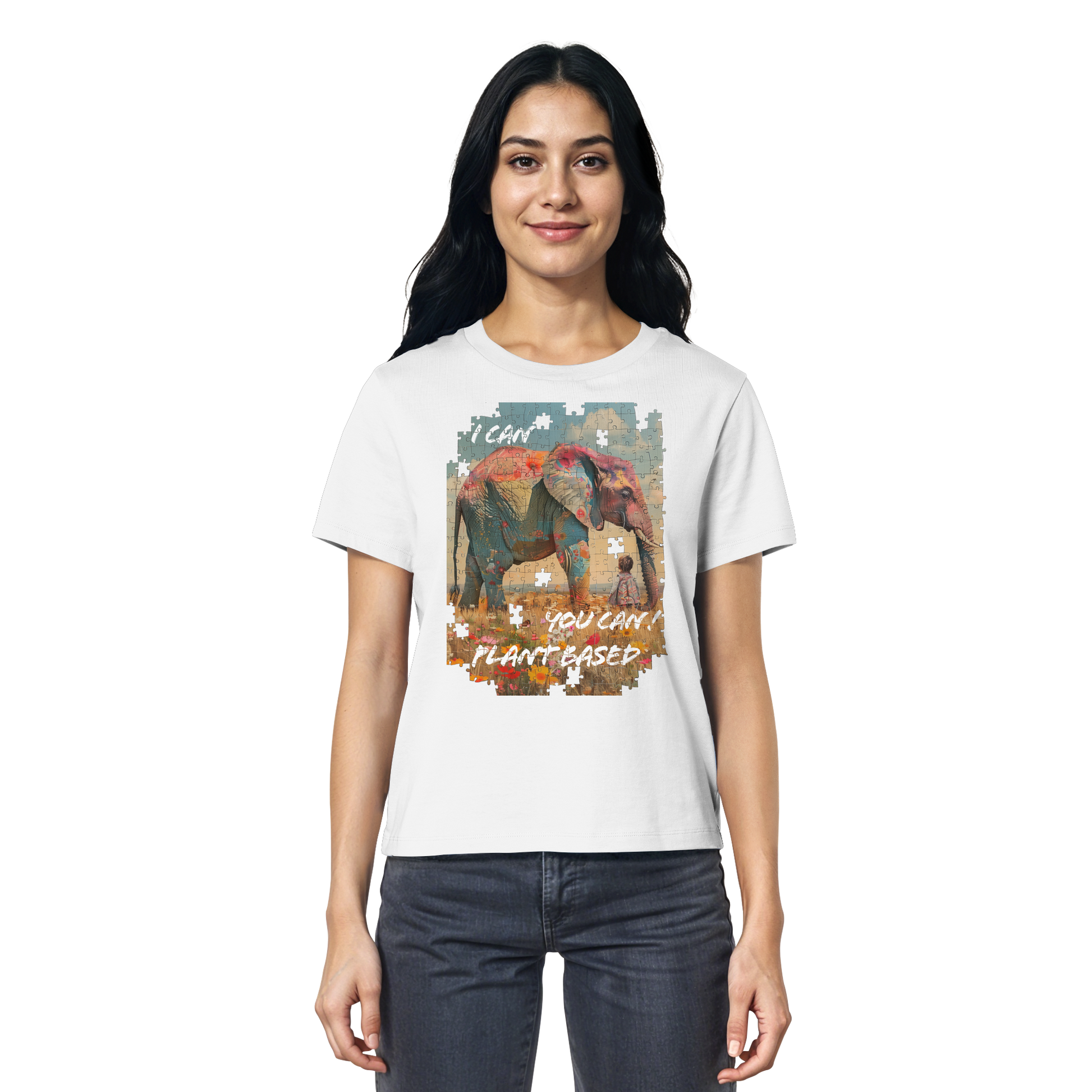 Dieses Damen Bio T-Shirt ist mehr als nur ein Kleidungsstück – es ist ein Statement für eine pflanzliche Lebensweise und den Respekt gegenüber allen Lebewesen. Zeige der Welt, dass auch die größten und stärksten Tiere pflanzlich leben können und dass wir alle einen Beitrag zu einer besseren Welt leisten können.