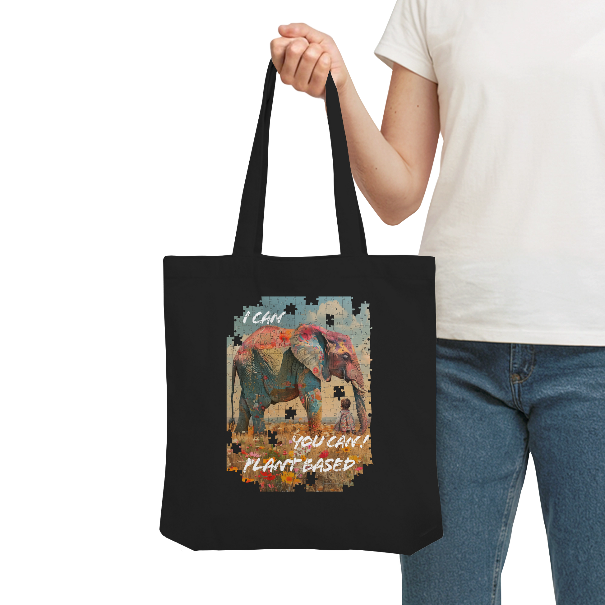 Das auffällige Design zeigt einen majestätischen Elefanten, der symbolisch für Stärke und Weisheit steht. "I can, you can...plant based!". Die größten Tiere leben pflanzlich. Diese Botschaft erinnert uns daran, dass eine pflanzliche Ernährung nicht nur möglich, sondern auch kraftvoll und gesund ist – genau wie der Elefant, eines der größten und stärksten Tiere der Erde.
