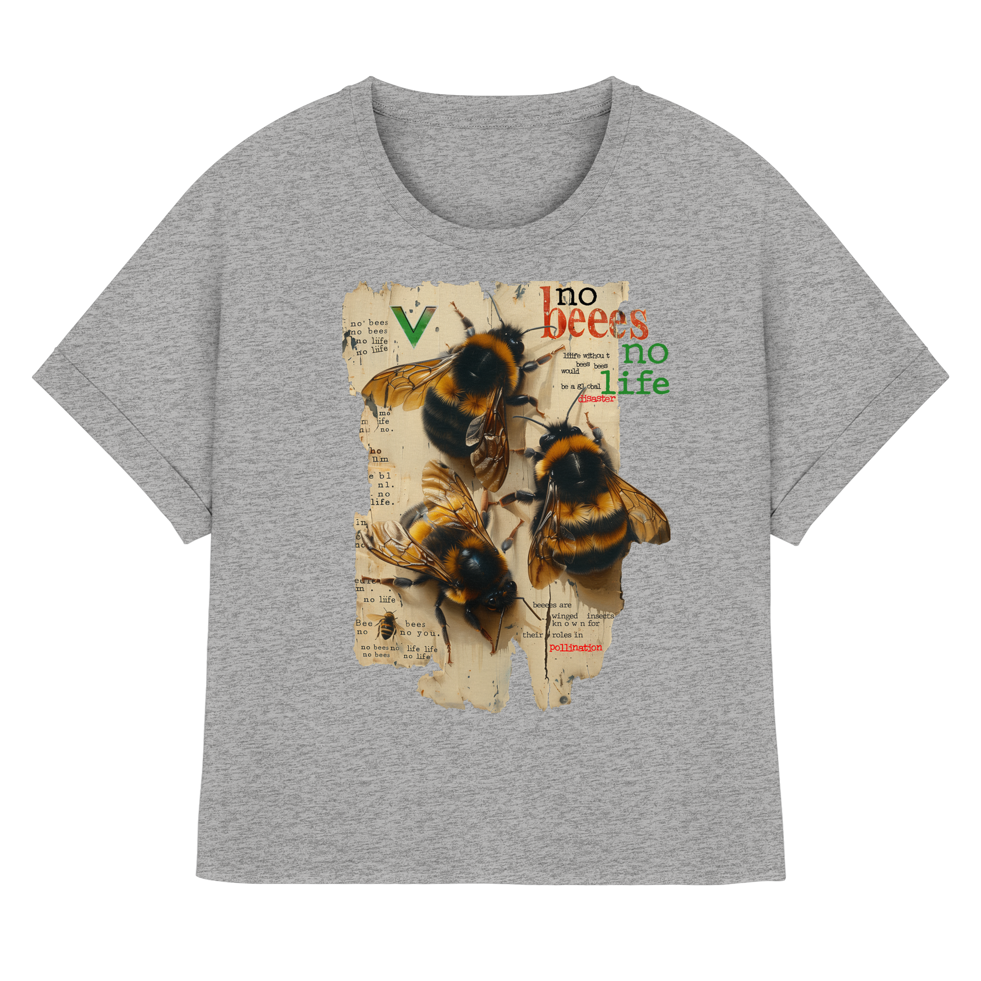 - Eyecatcher: Das coole Bienen-Design und der Slogan "No Bees, No Life" machen dich zum Blickfang und setzen ein starkes Statement.