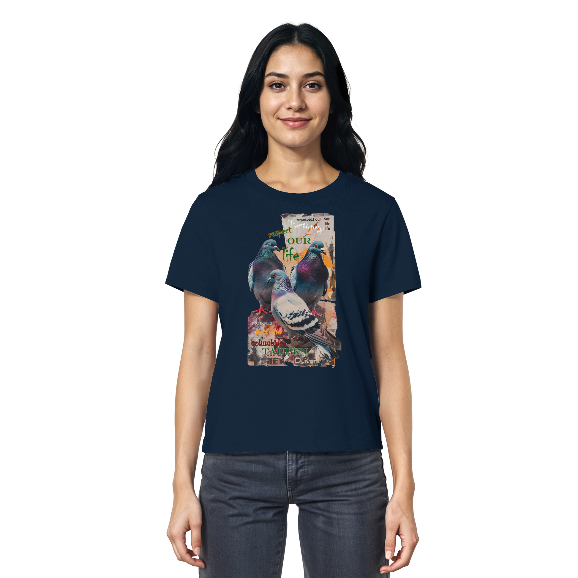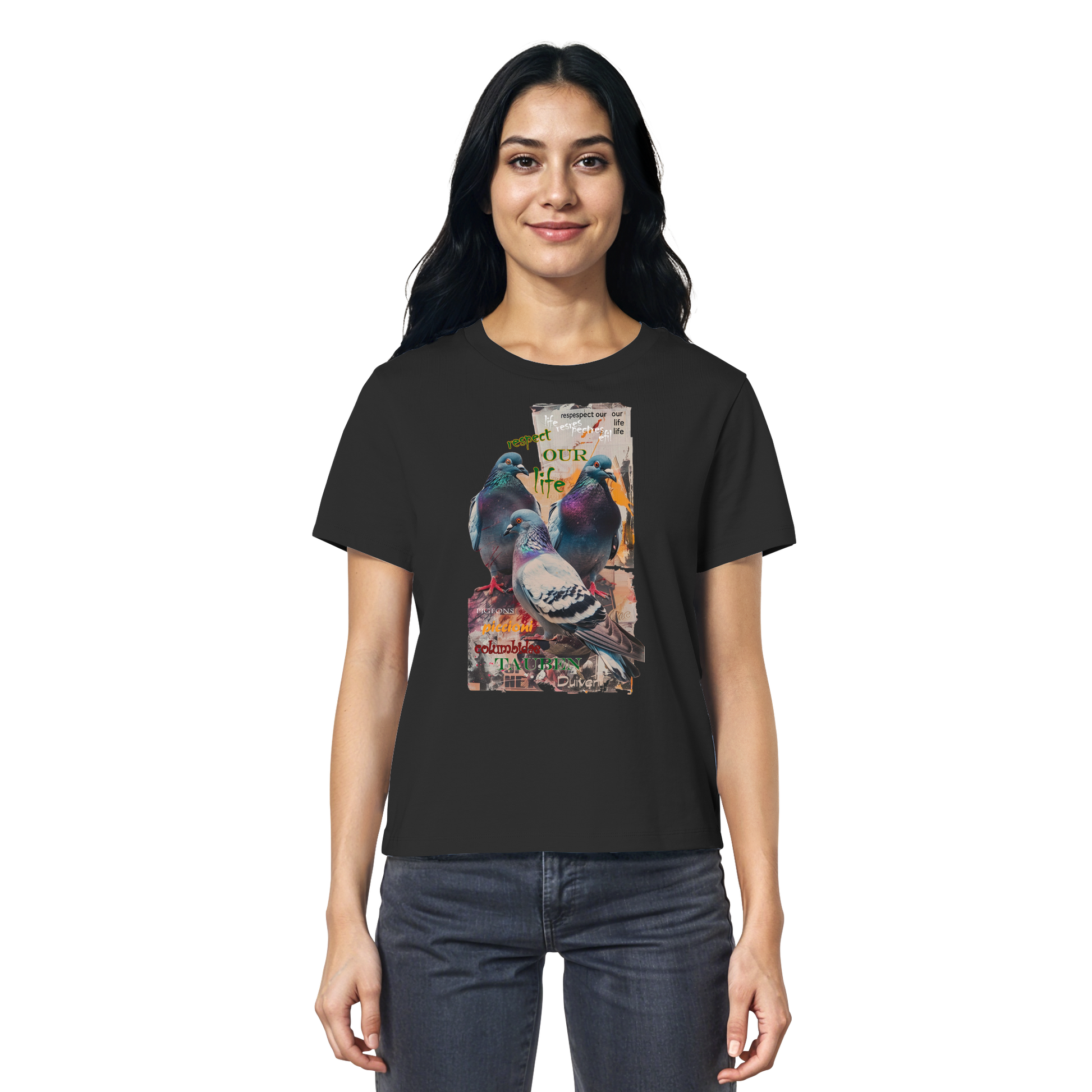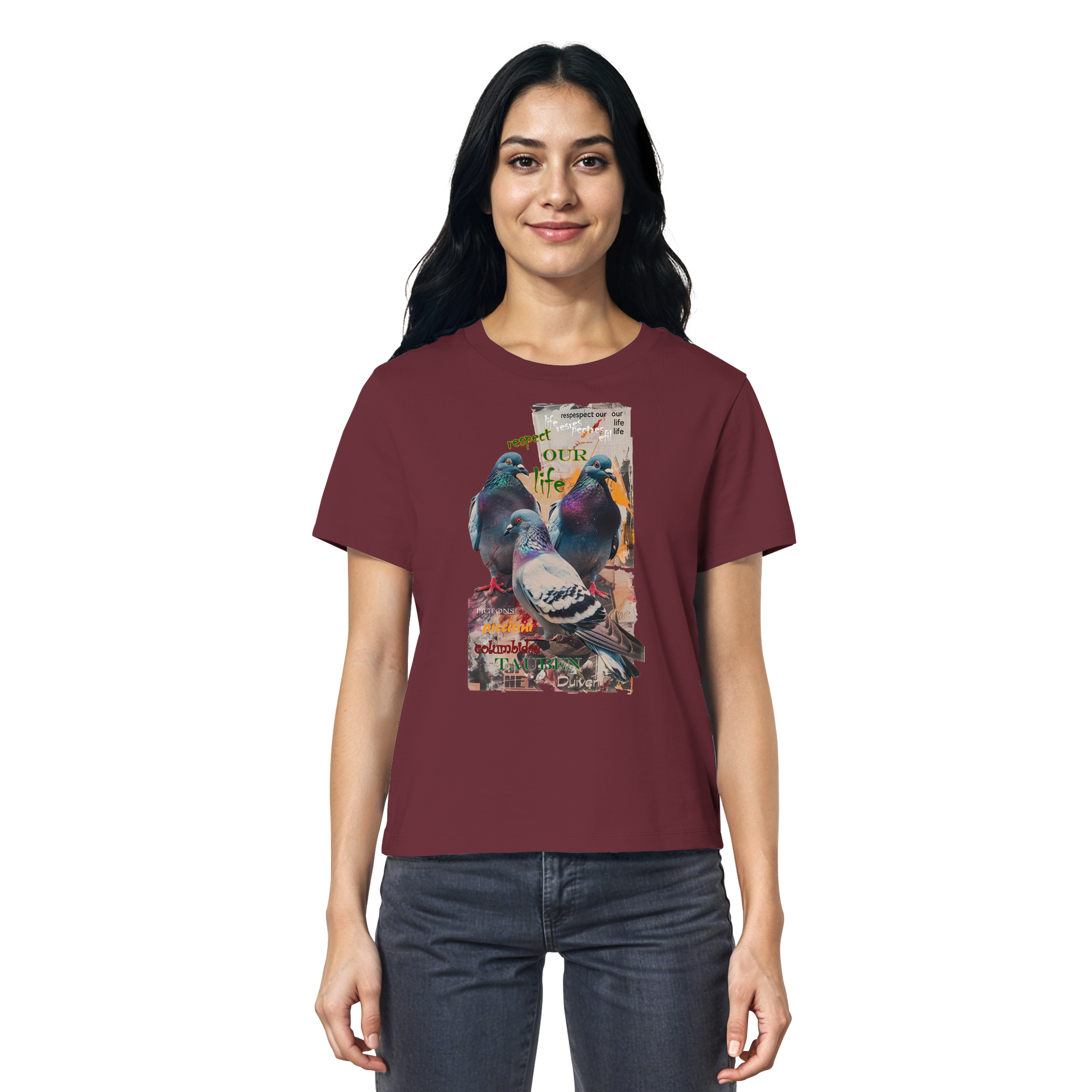 vegwear "respect our life - Tauben" - Damen Bio T-Shirt, nachhaltig, fair