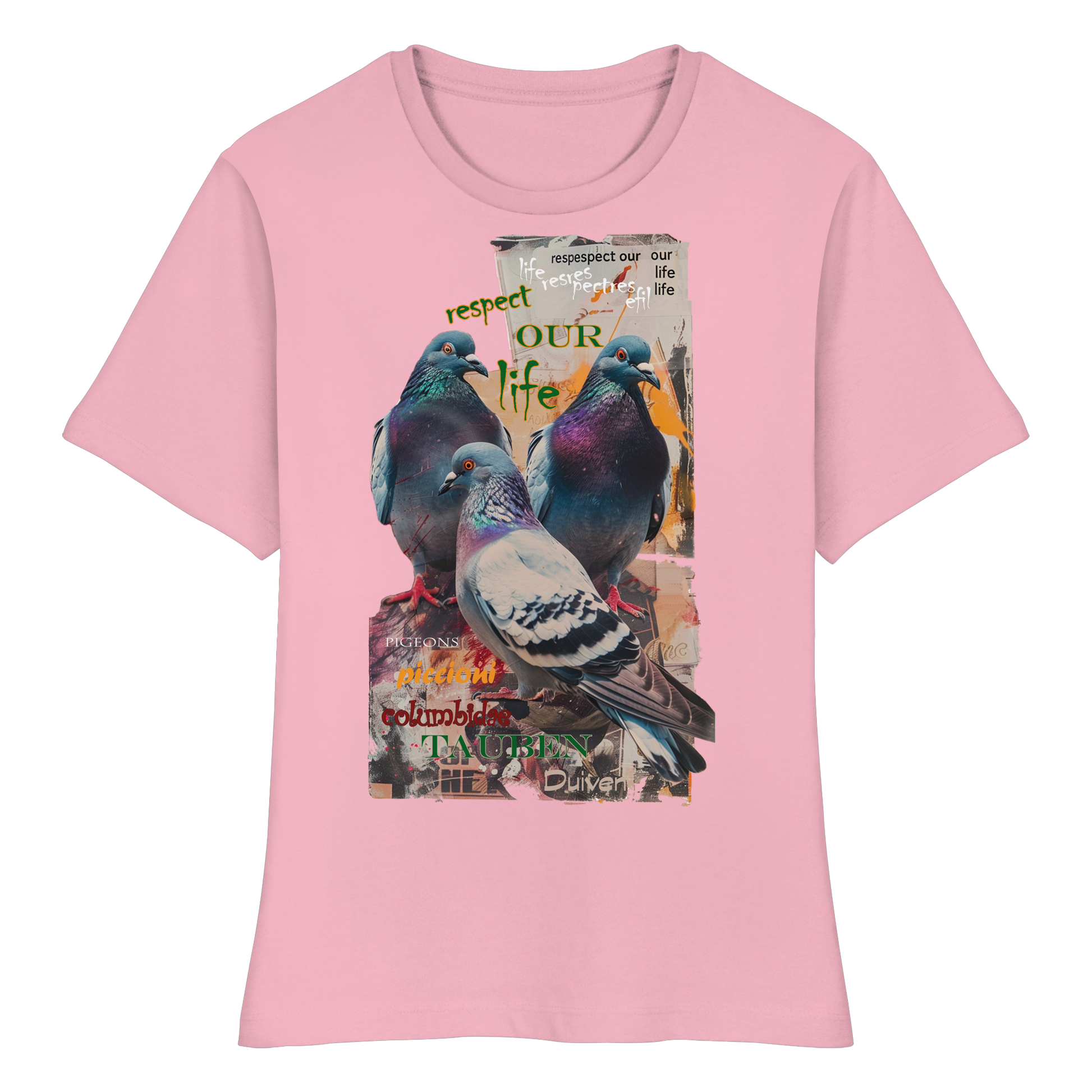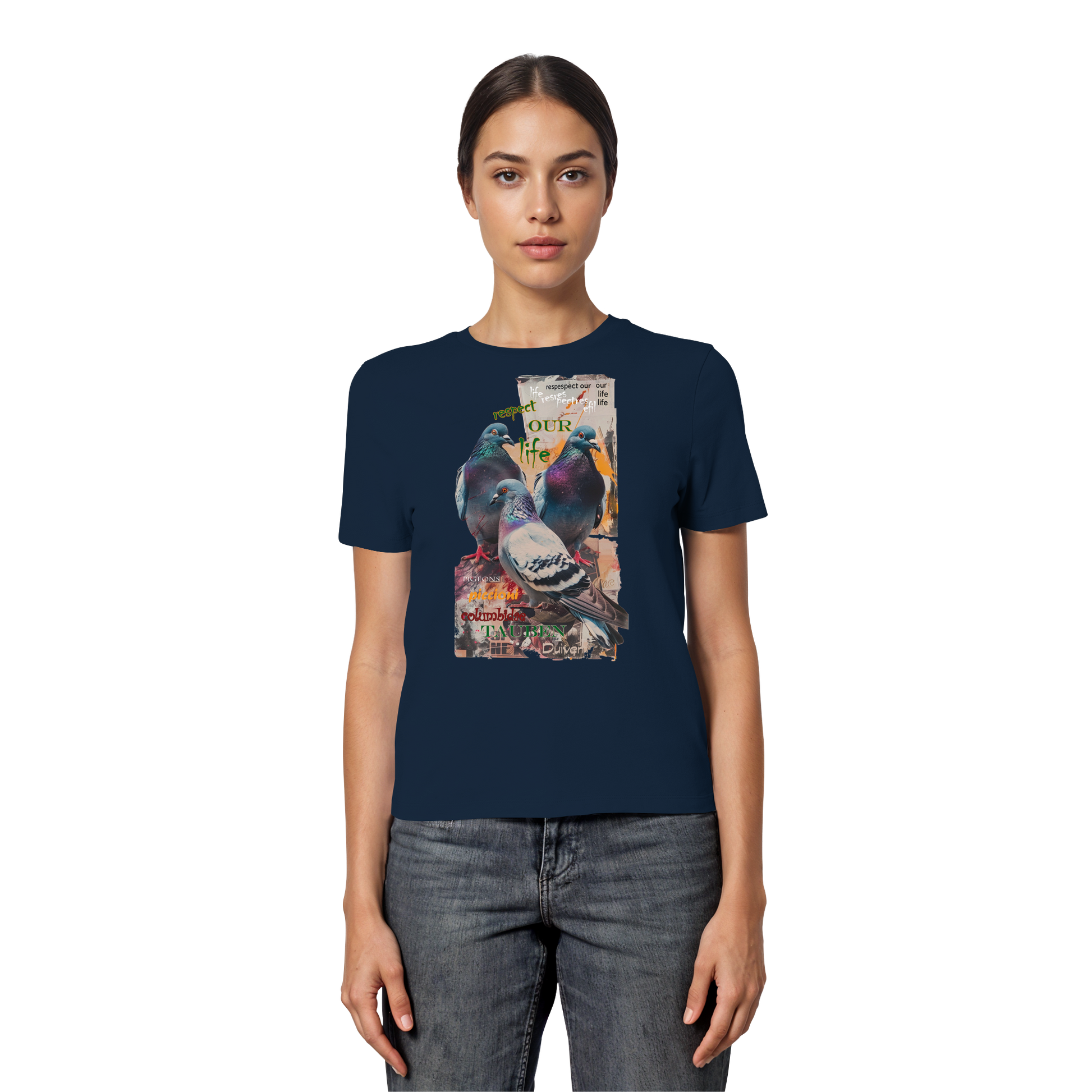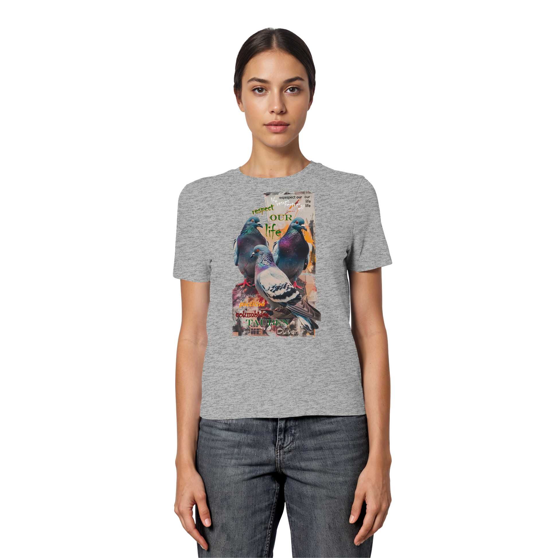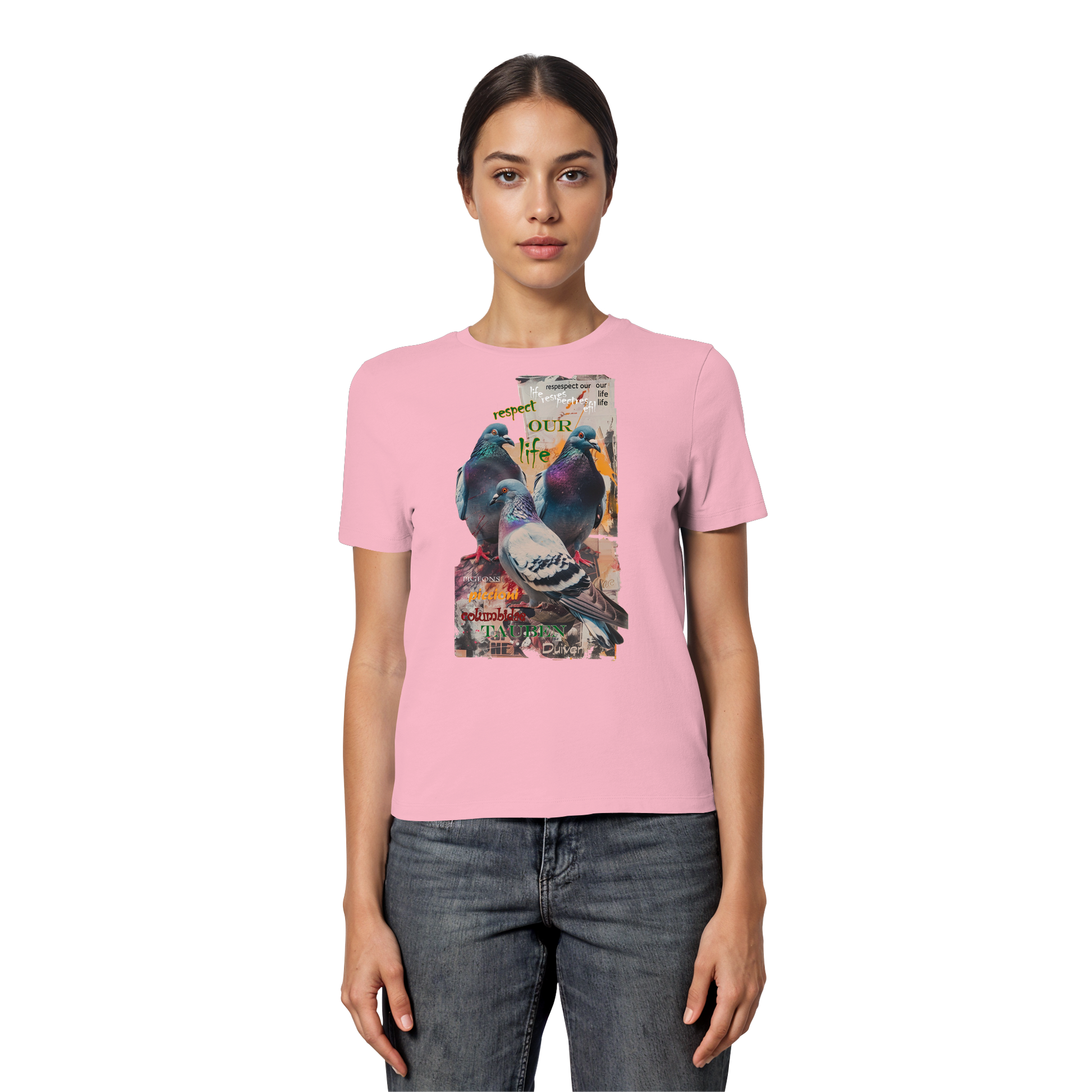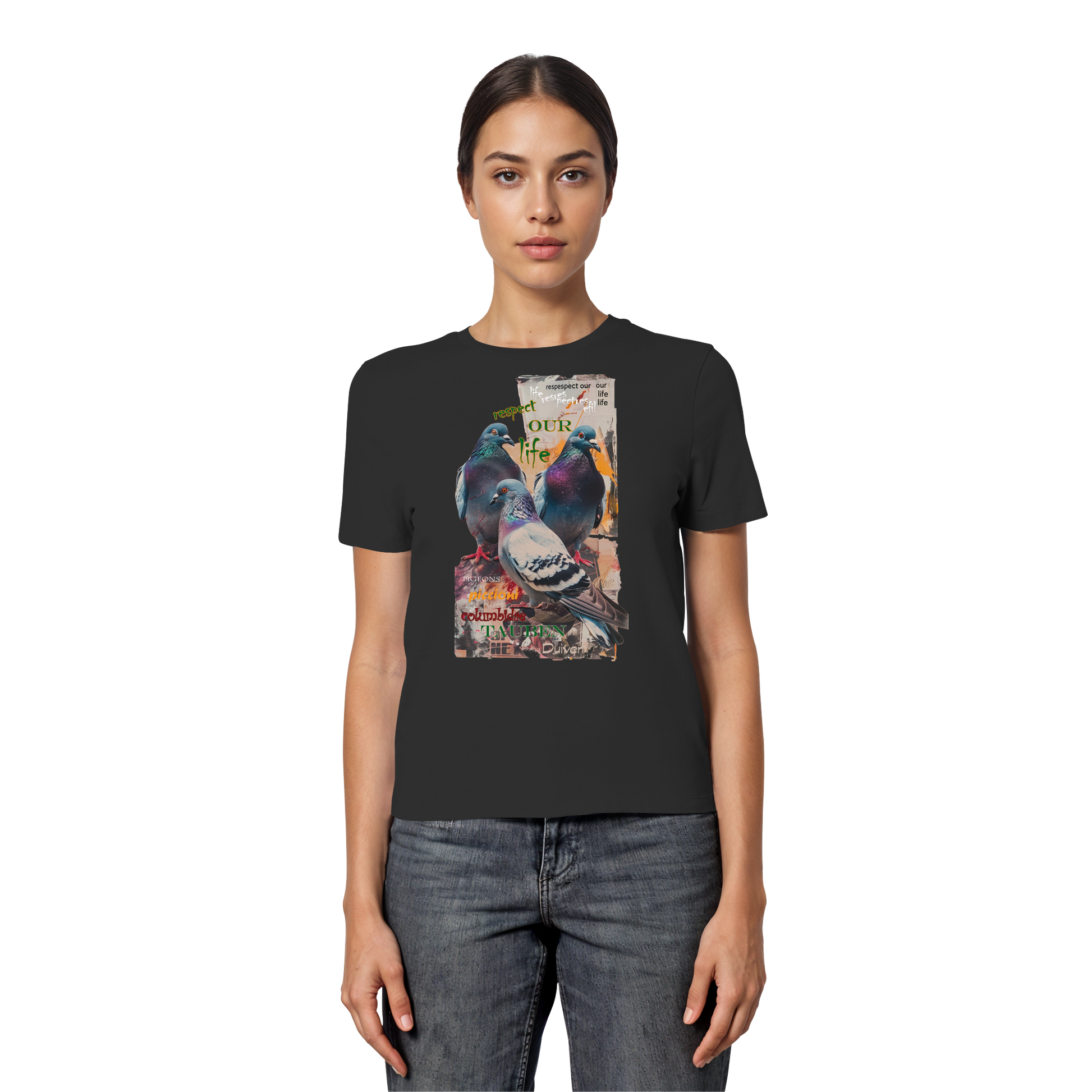 vegwear "respect our life - Tauben" - eng geschnittenes Damen Bio T-Shirt