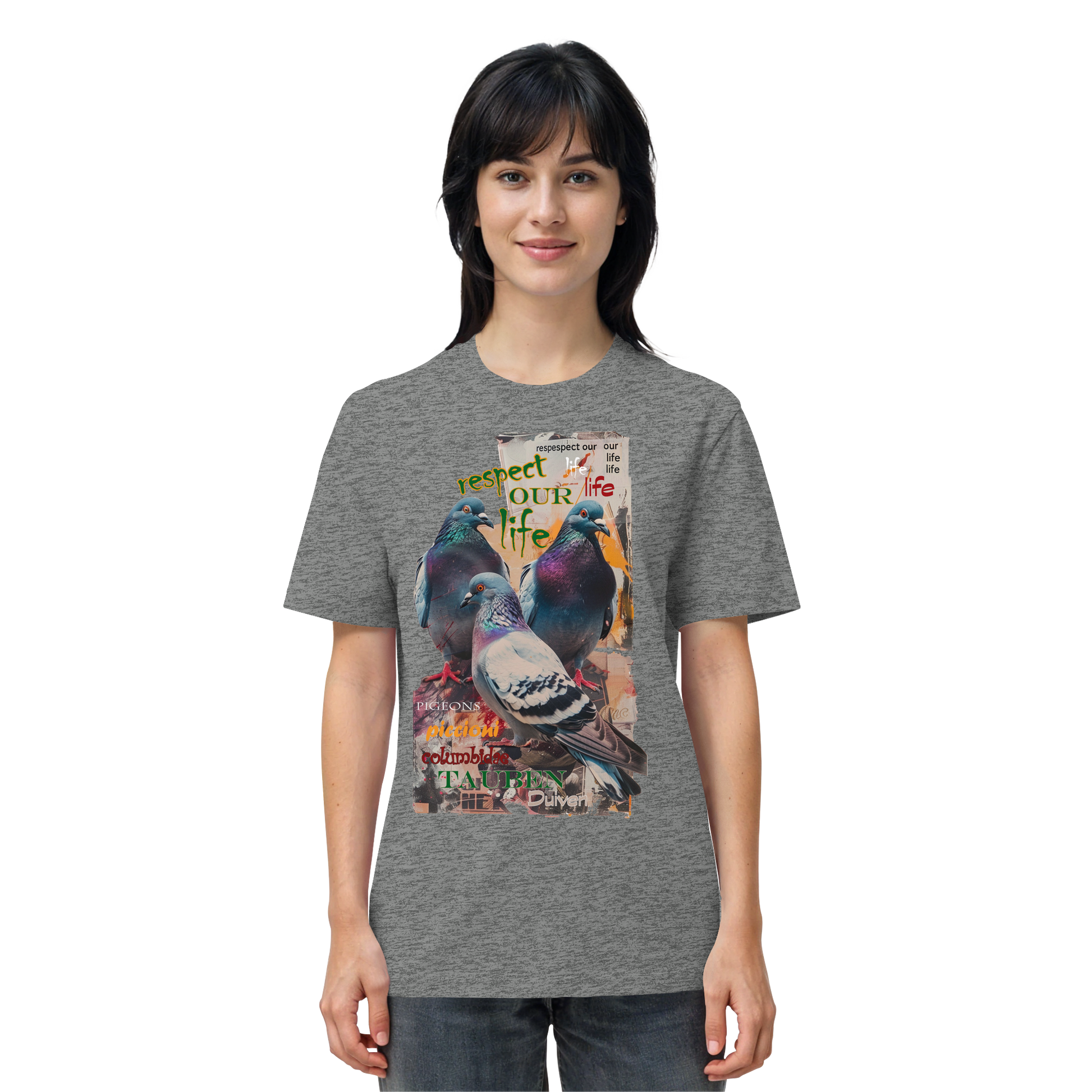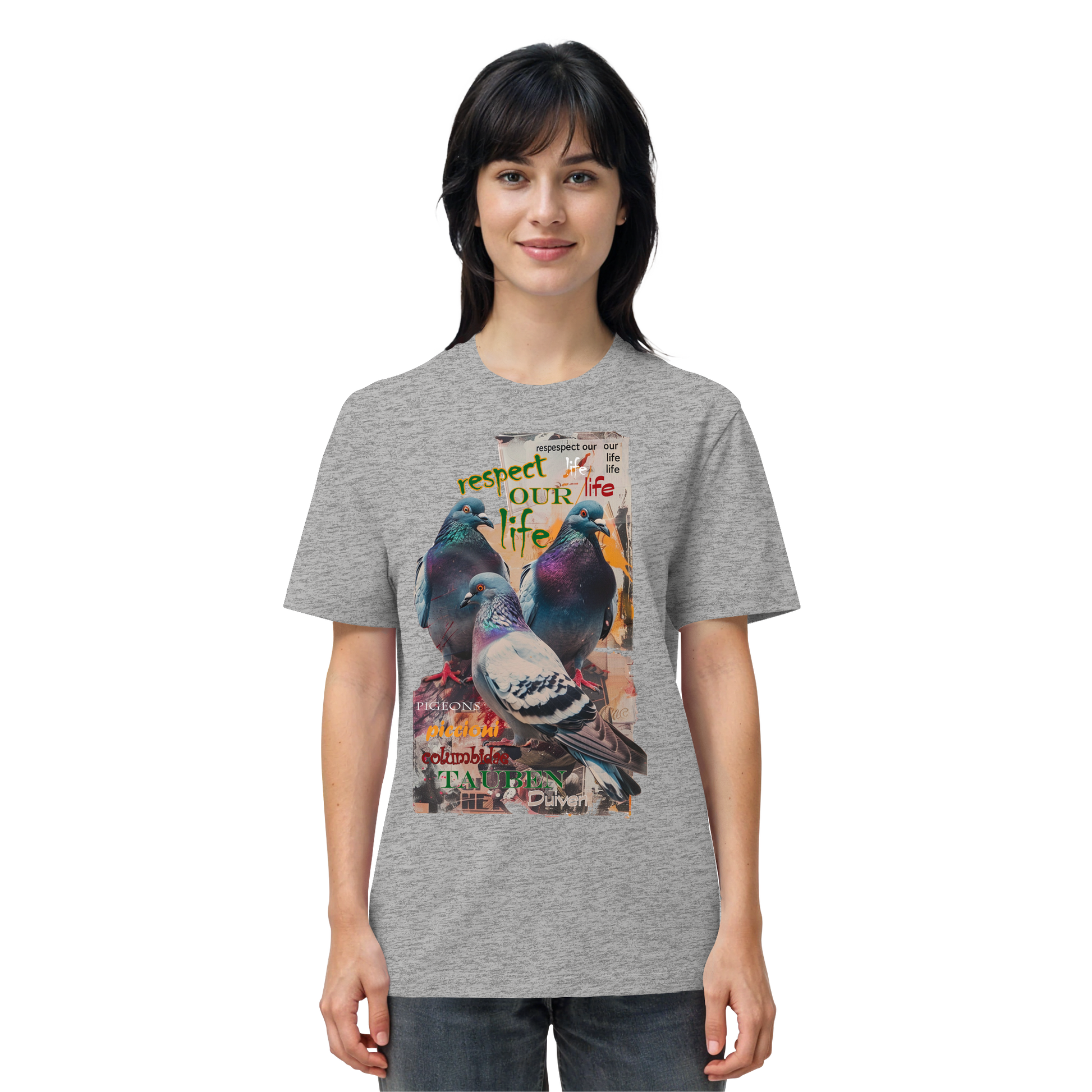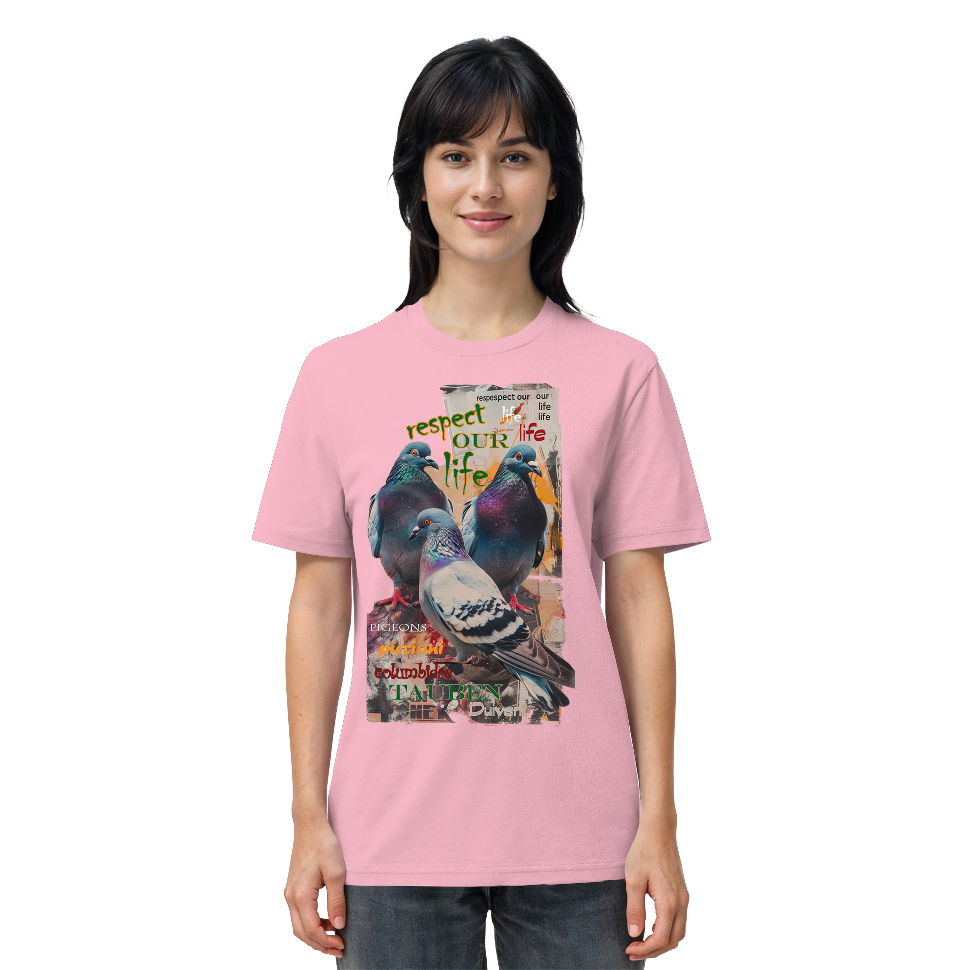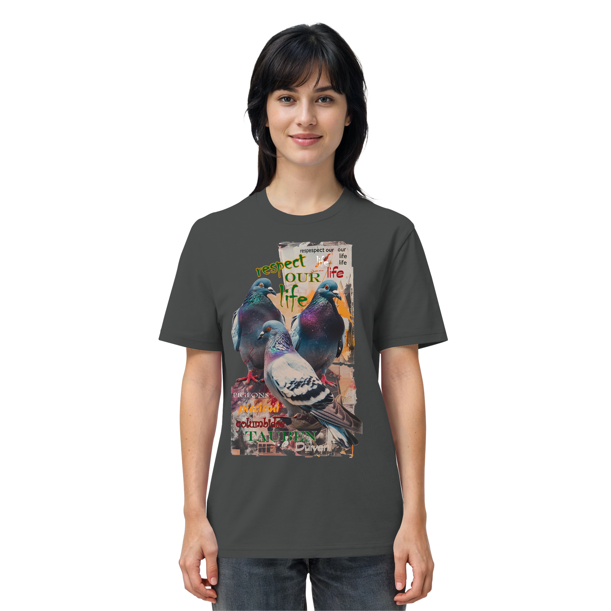 vegwear "respect our life - Tauben" - unisex Bio T-Shirt, vegan, nachhaltig