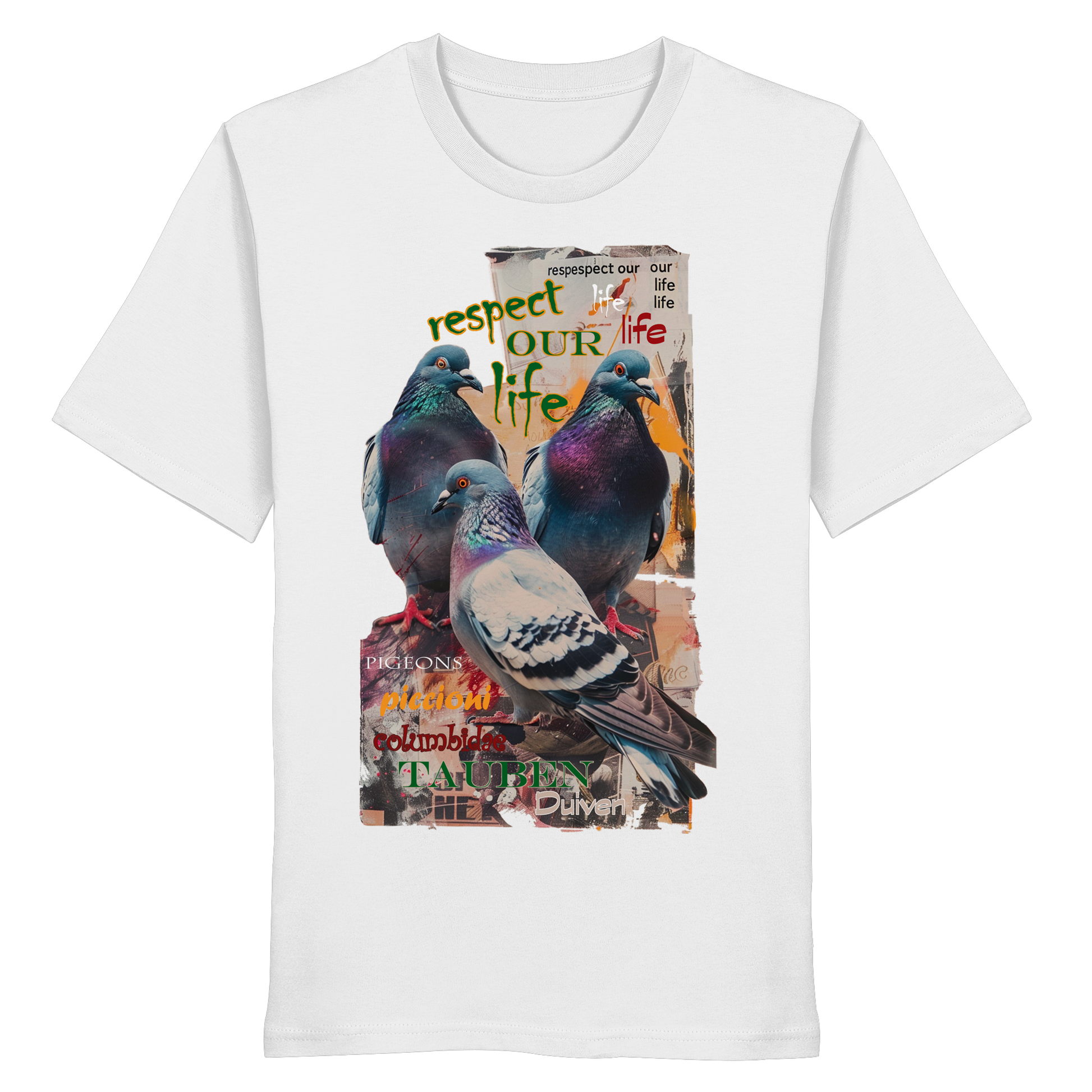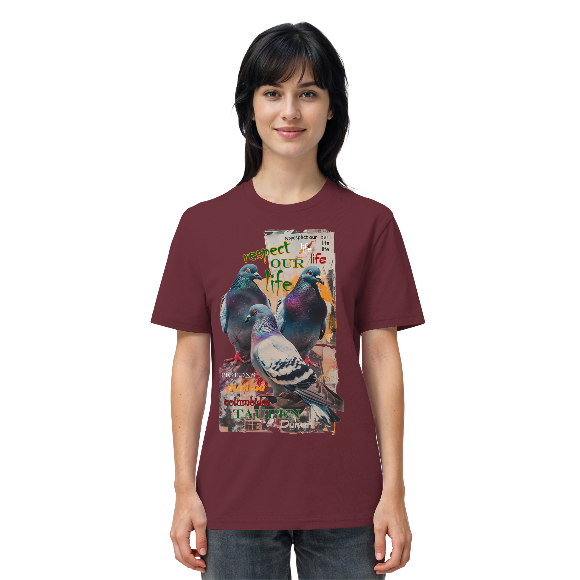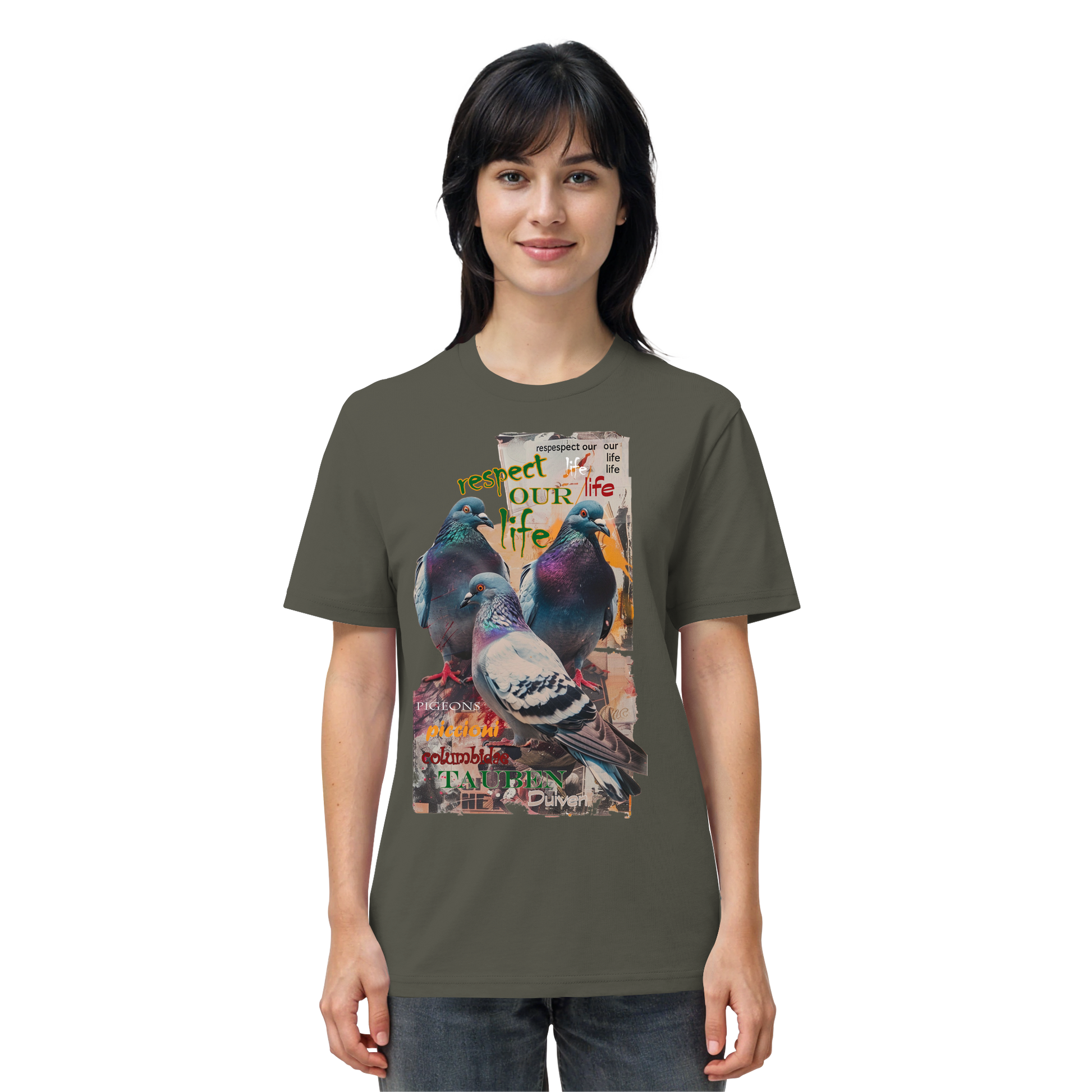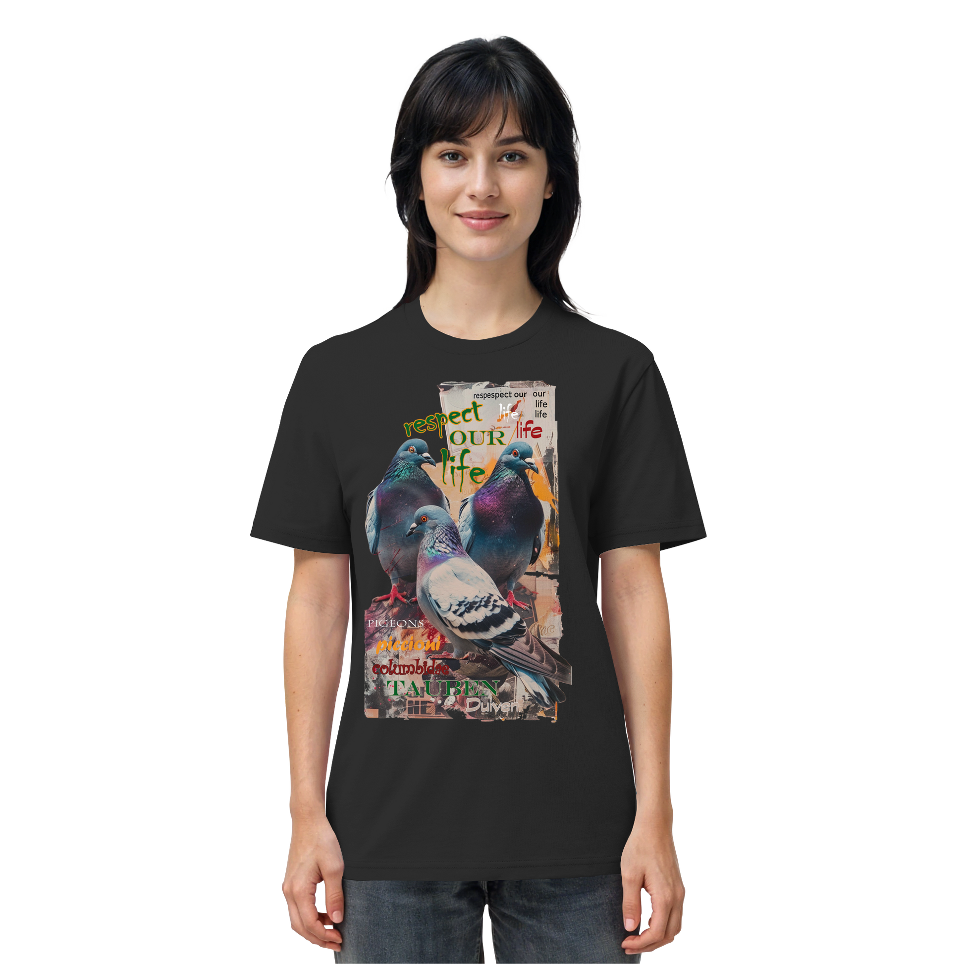vegwear "respect our life - Tauben" - unisex Bio T-Shirt, vegan, nachhaltig
