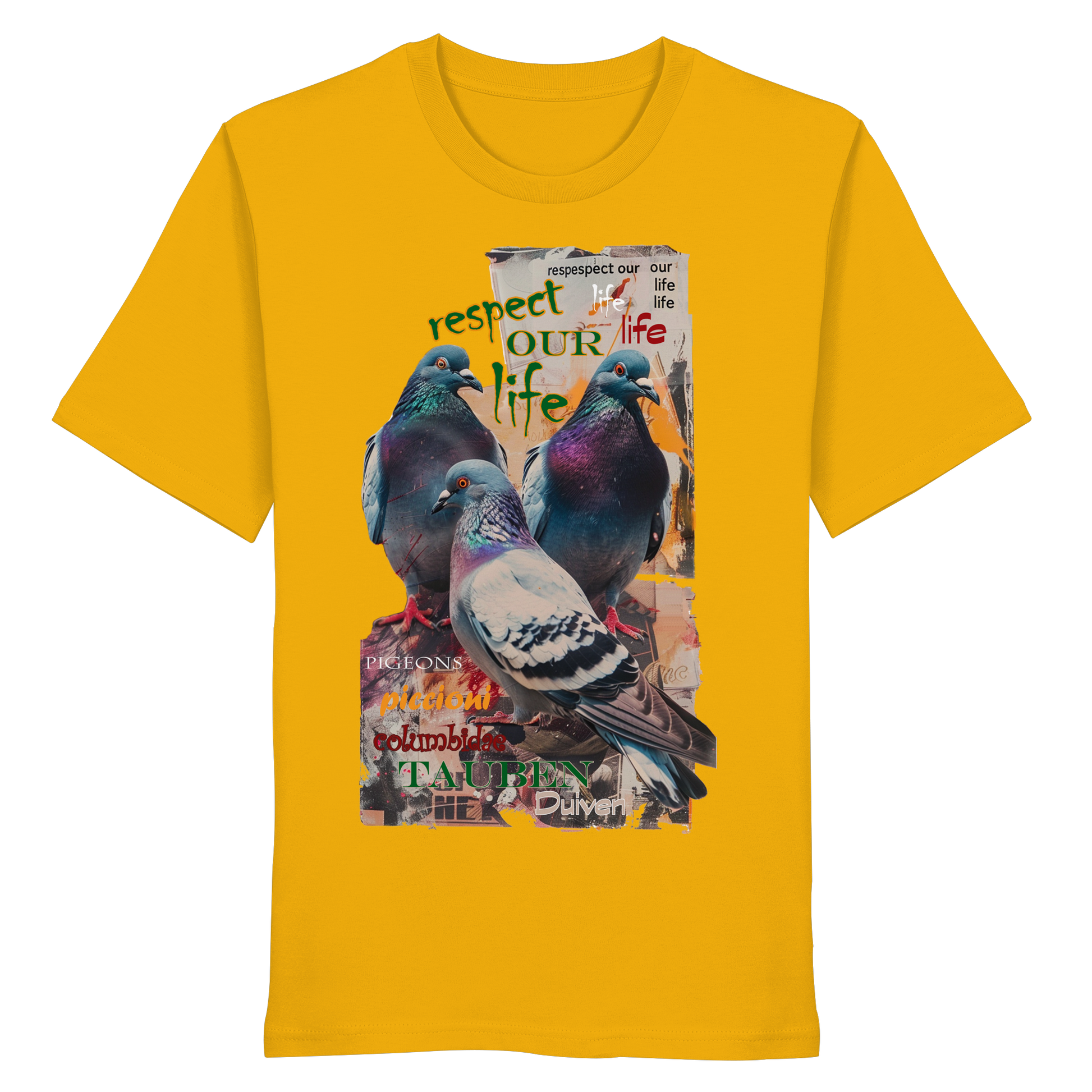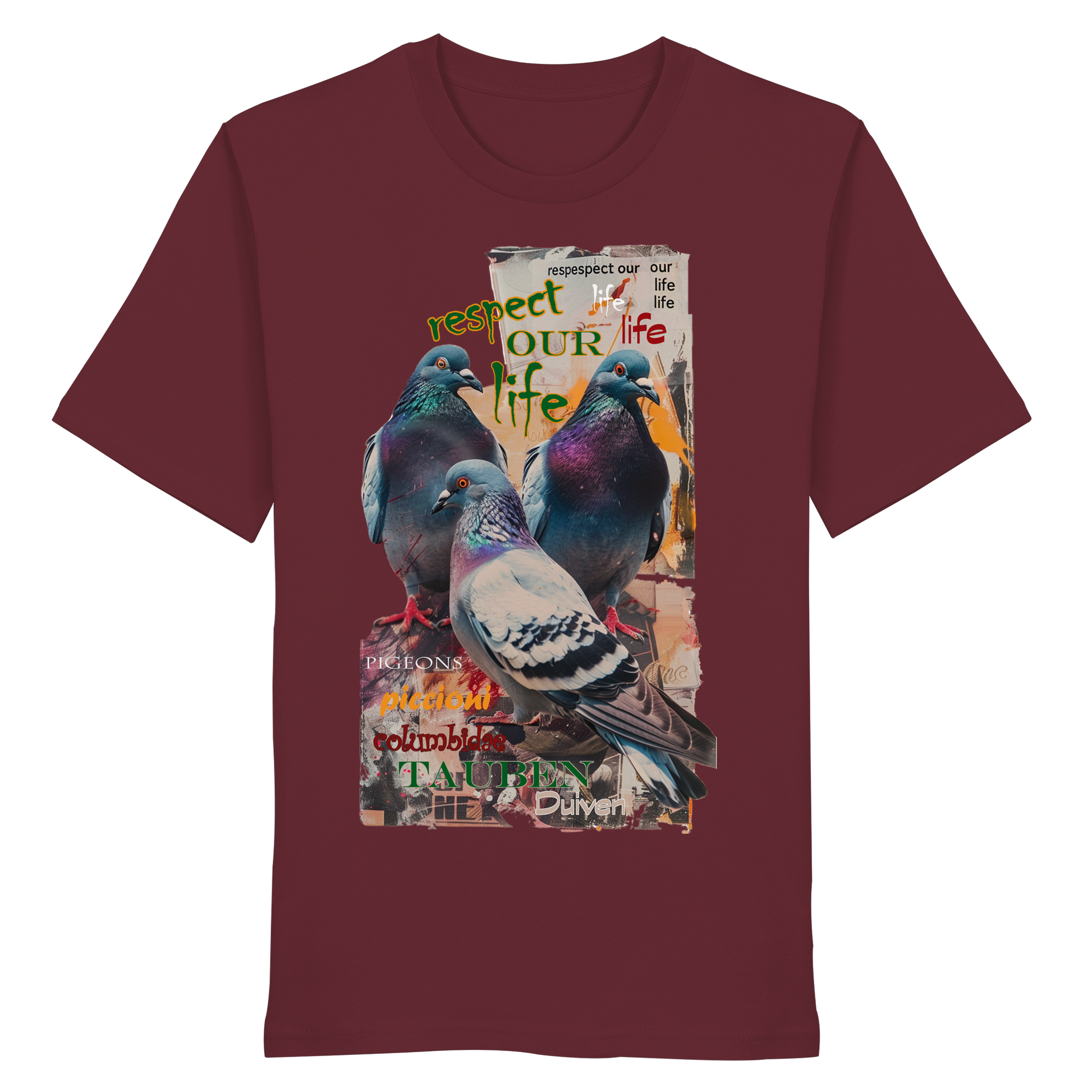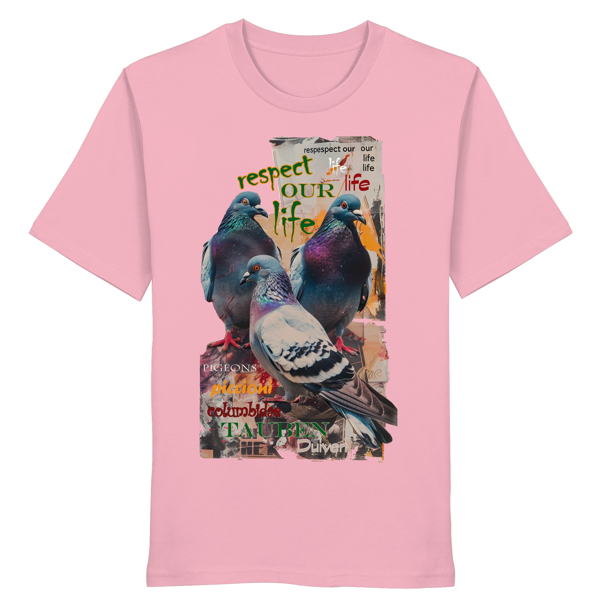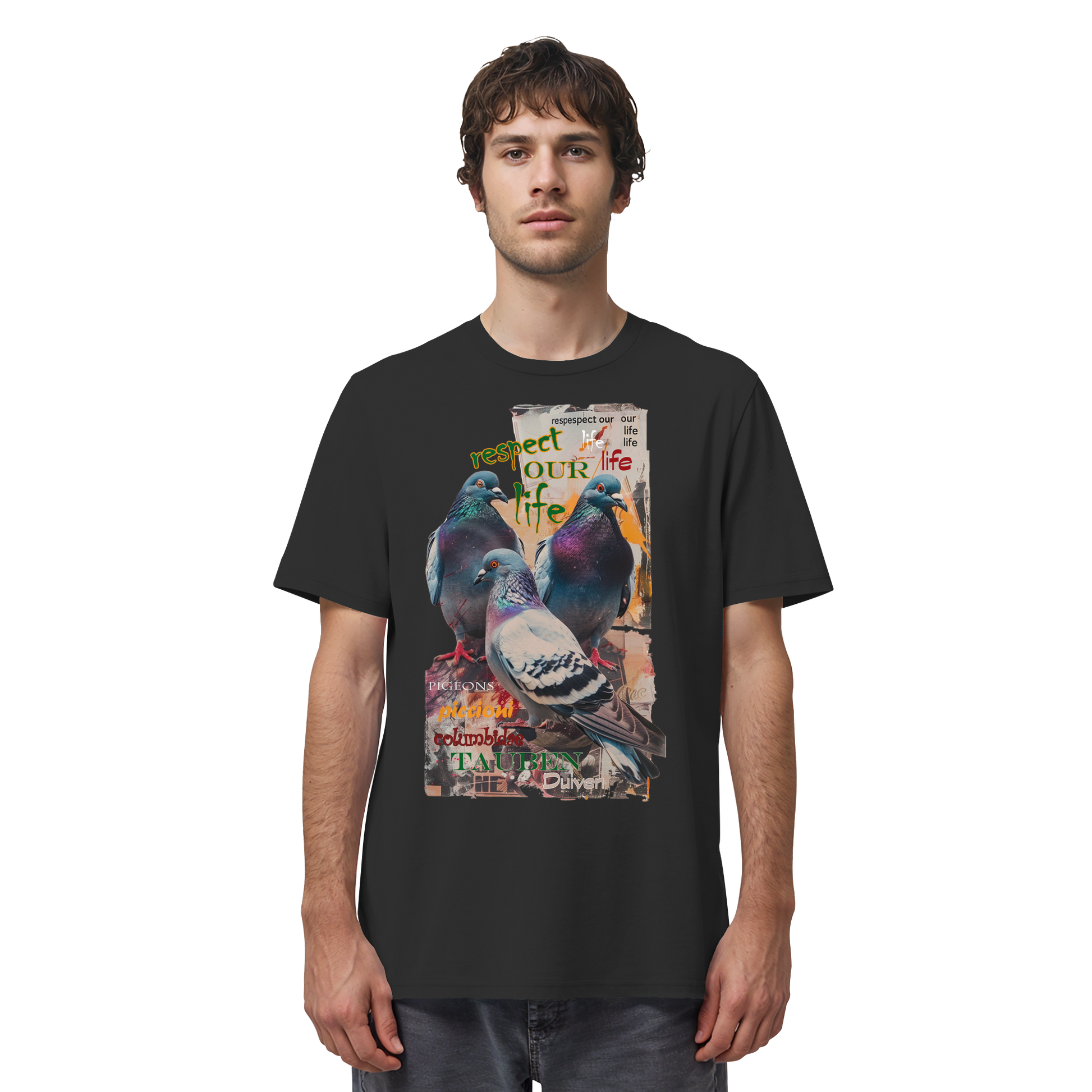 vegwear "respect our life - Tauben" - unisex Bio T-Shirt, vegan, nachhaltig