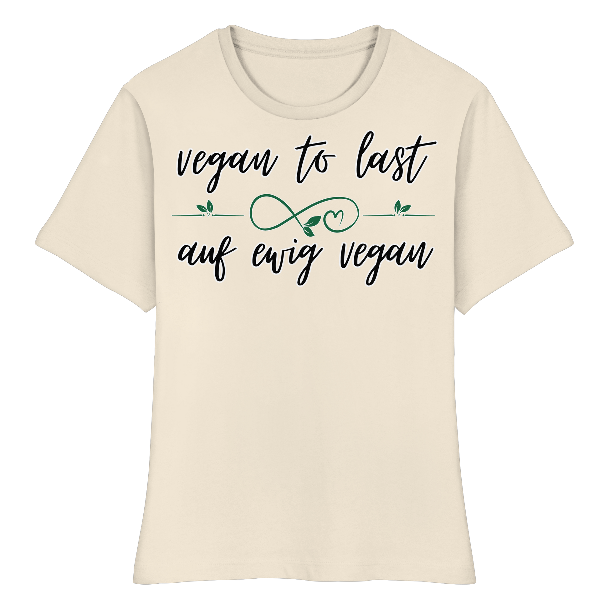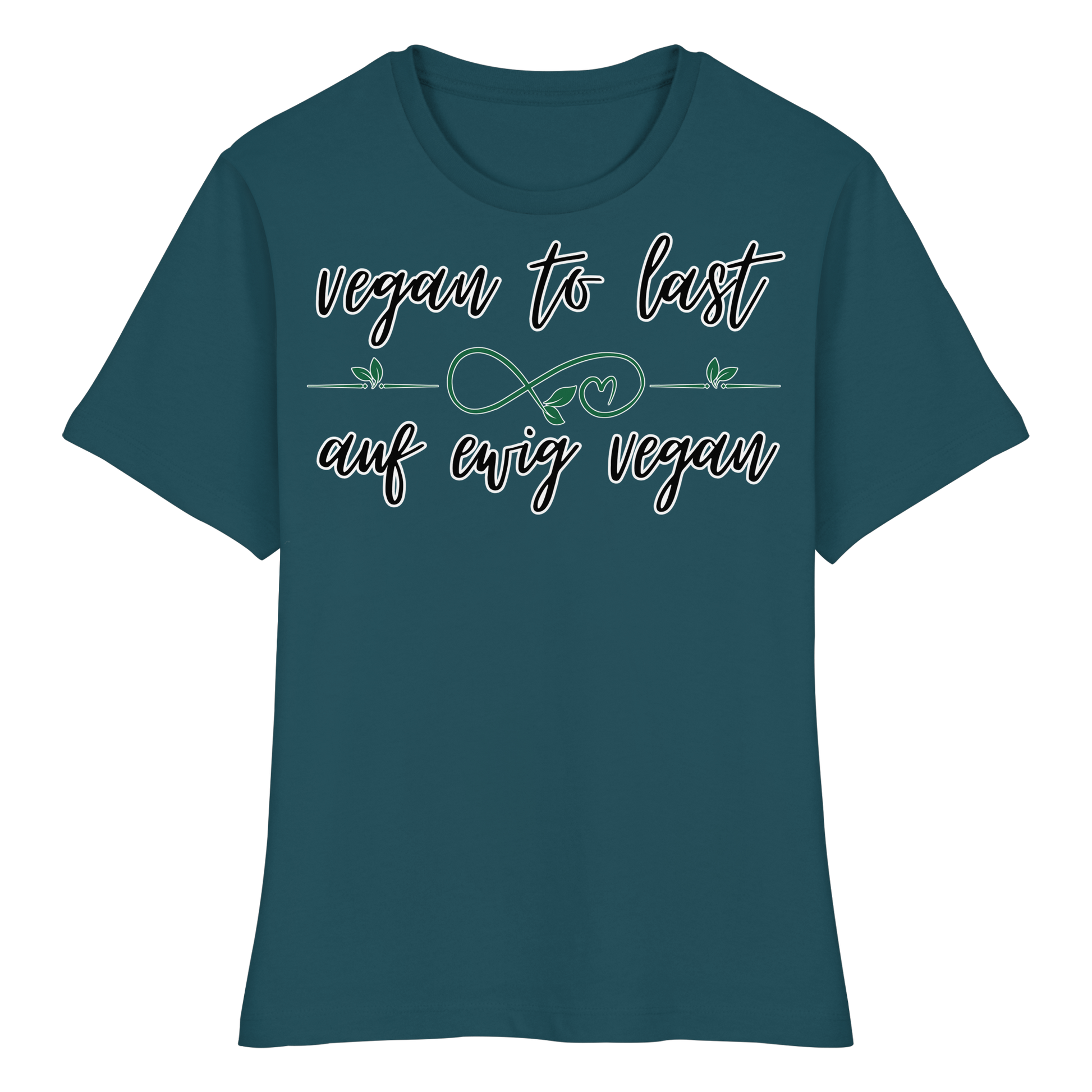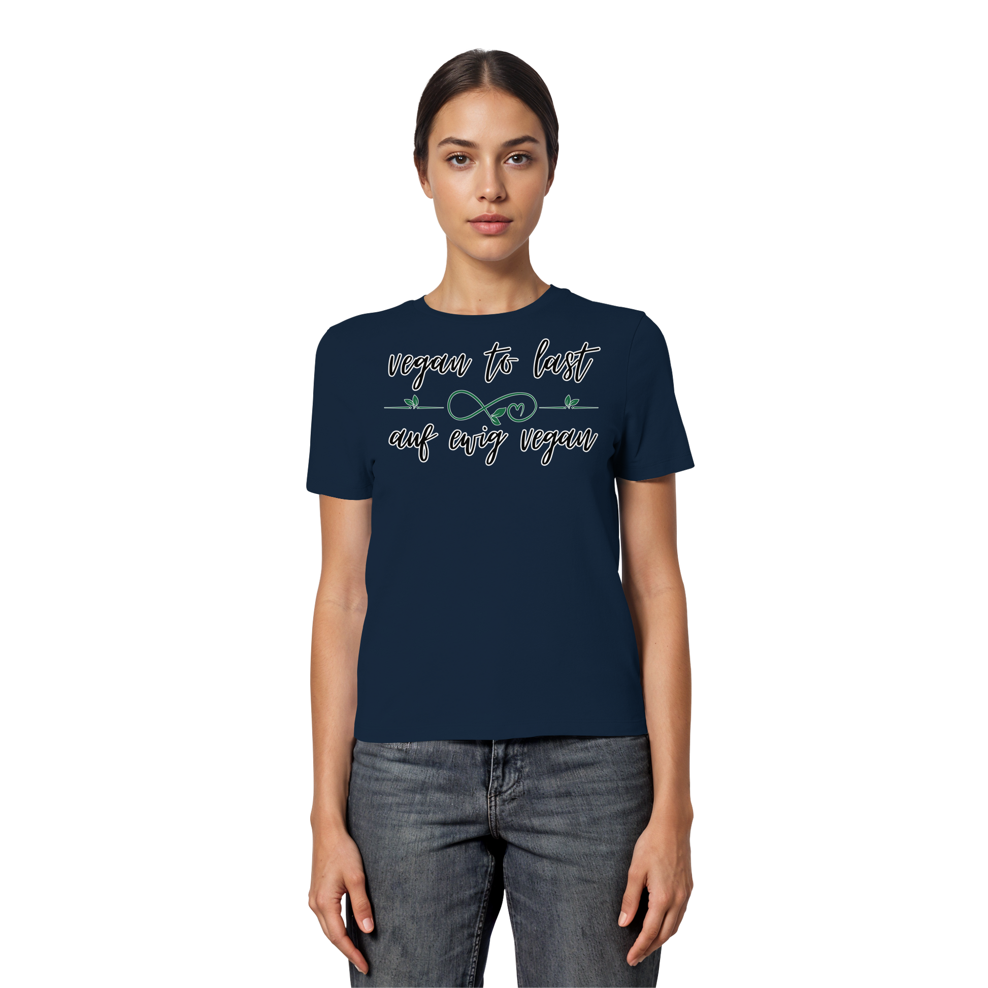Dieses eng geschnittene vegane Damen T-Shirt aus Bio Baumwolle trägt den inspirierenden Slogan "vegan to last - auf ewig vegan" – ein schlichtes und doch kraftvolles Statement für einen nachhaltigen, veganen Lebensstil. Vegan ist die Zukunft, die Zukunft ist vegan.