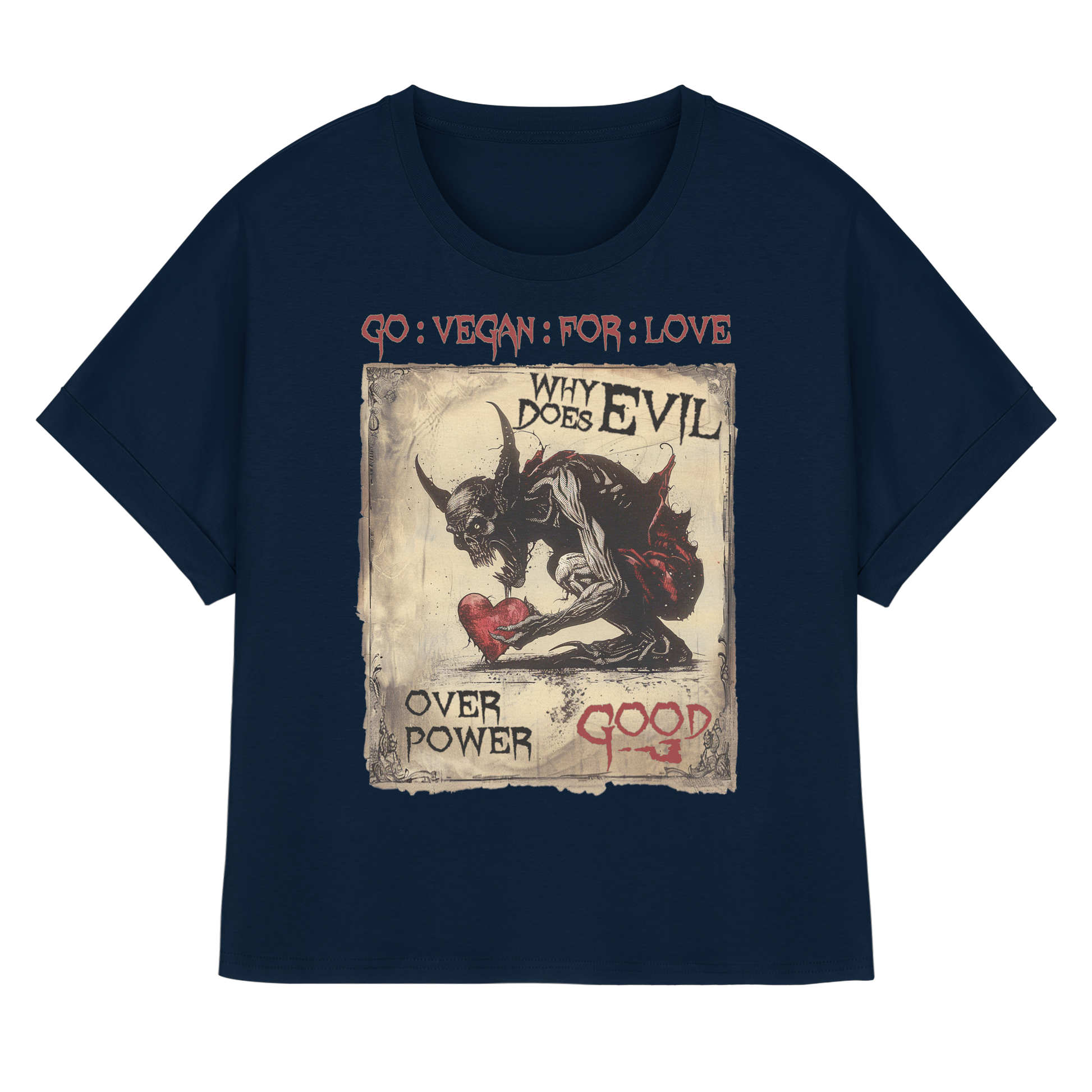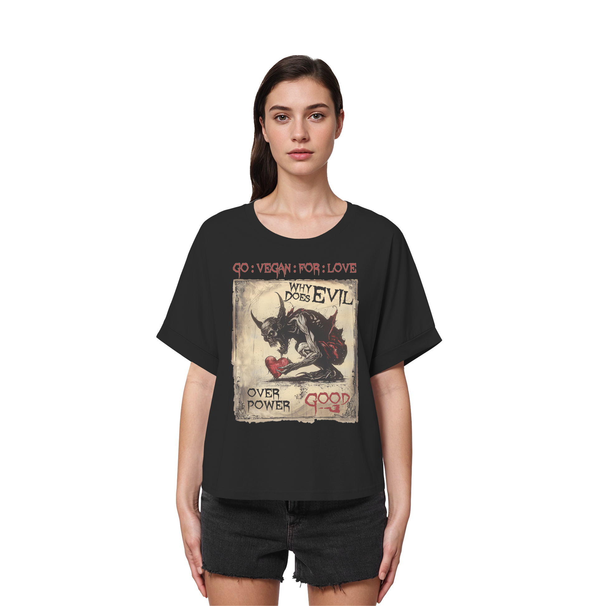 vegwear "why does evil" - oversized Damen Bio T-Shirt mit Fledermausärmel
